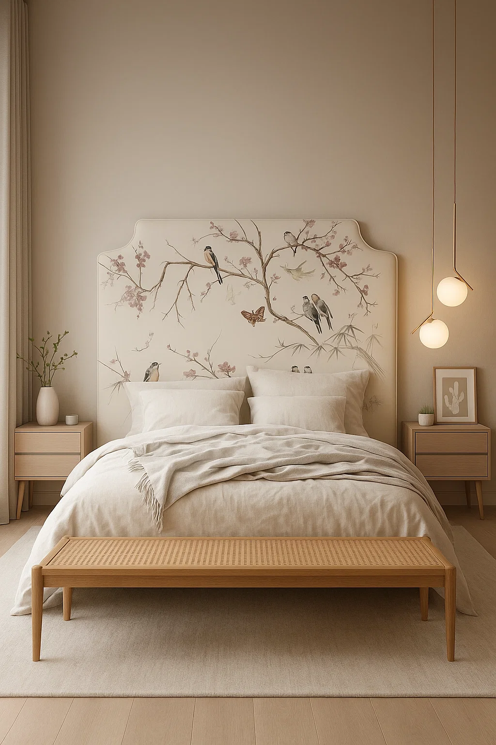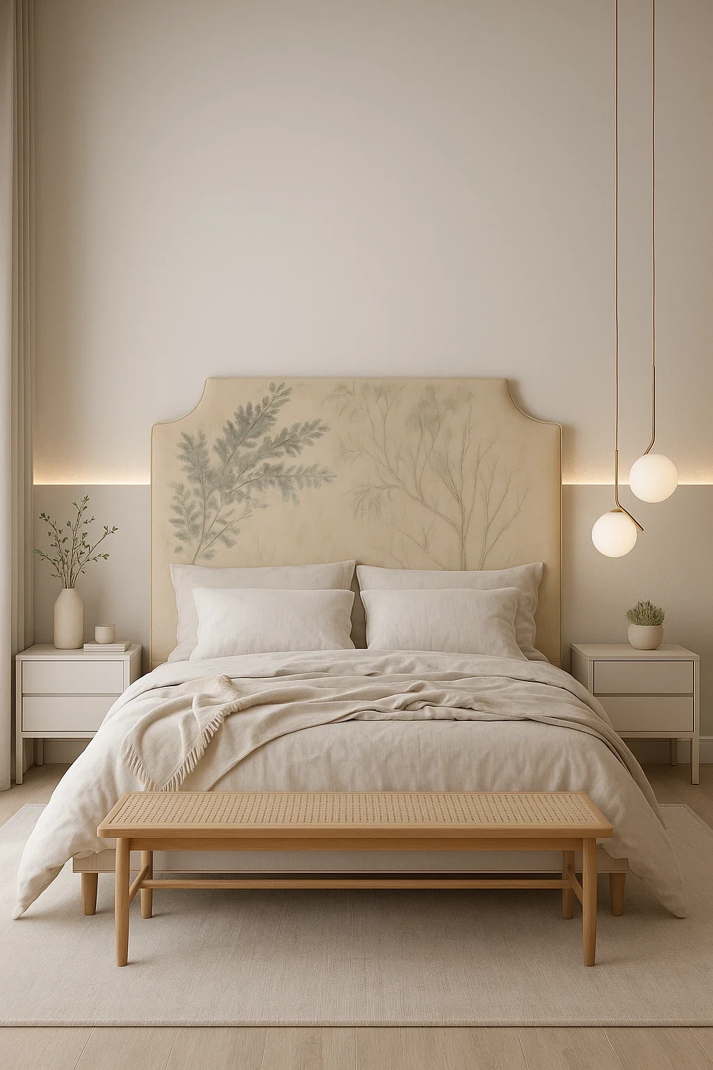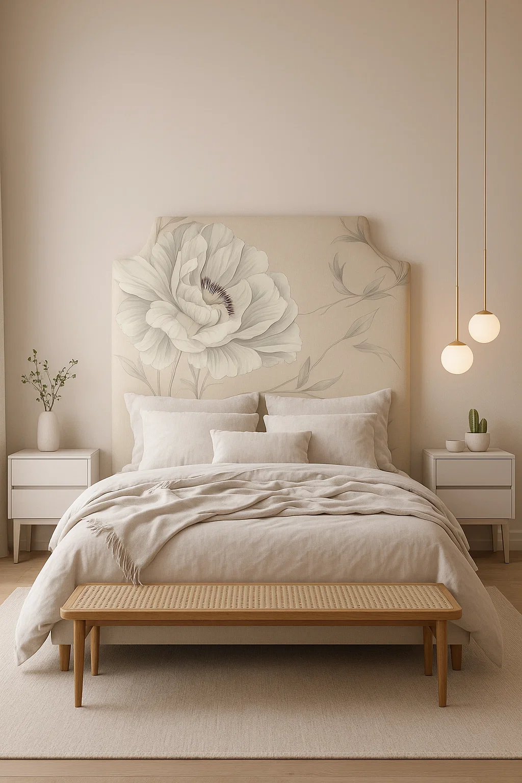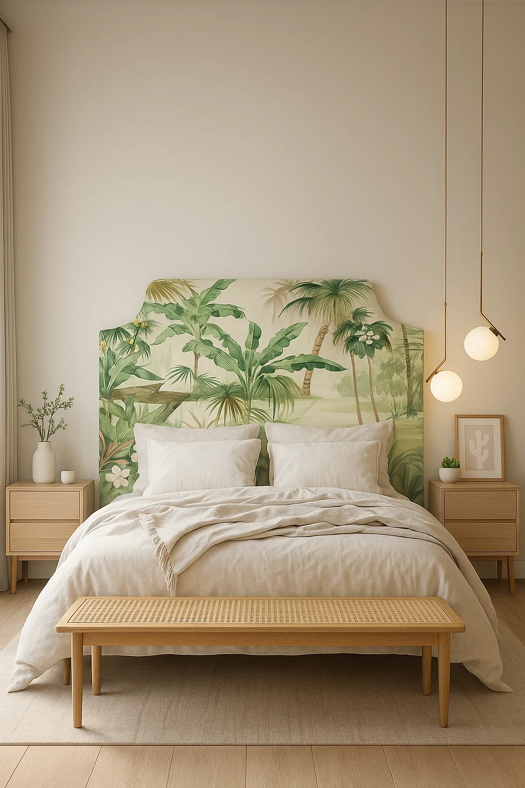 Con un diseño suave y artístico que transmite serenidad. Cada respaldo está tapizado a mano en tela Panamá, con relleno de gomaespuma y estructura de madera, logrando una pieza firme y confortable. Disponible en diferentes colores y tamaños. Grosor: 7,8 cm. Este respaldo forma parte de una colección inspirada en la naturaleza, el arte y la calidez del hogar.